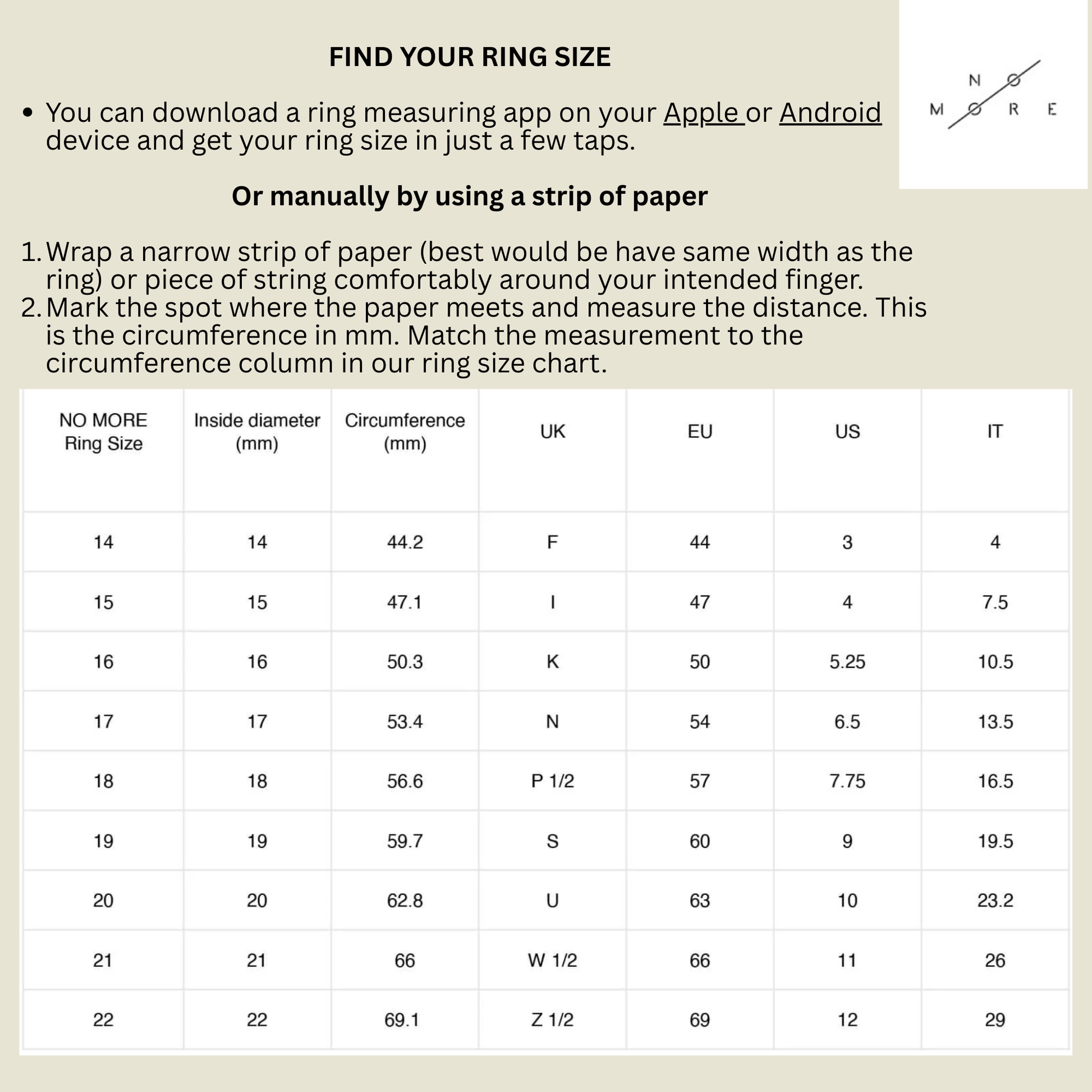M: Fits 16 – 18.5 size rings